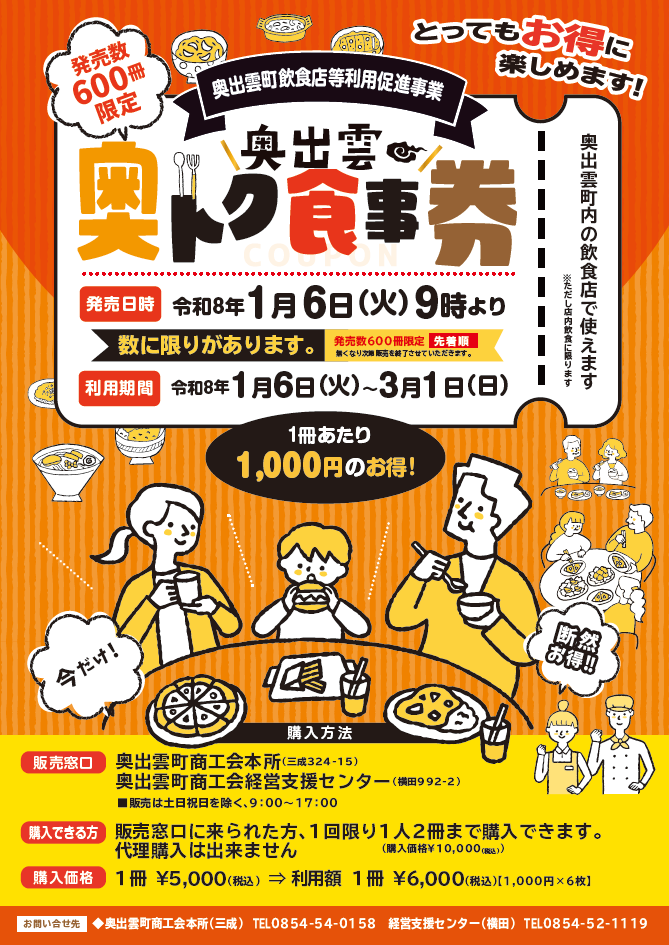 食事券は600冊限定です。数に限りがありますので、先着販売となります。お早めにお買い求めください。